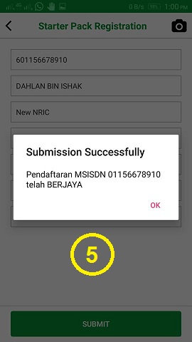 Rajah no 5 di bawah menunjukkan pendaftaran telah berjaya. Seterusnya, Setelah Submission Successfully, sila klik OK.