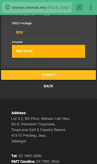 Seterusnya, login semula ke Onesys. Bila anda lihat paparan seperti di bawah, proses upgrade ke pakej BLACK dan selesai sepenuhya. Tugas anda sekarang, closing closing closing closing closing user dan pengedar sebanyak yang mungkin dan nikmati insentif luar biasa!!!